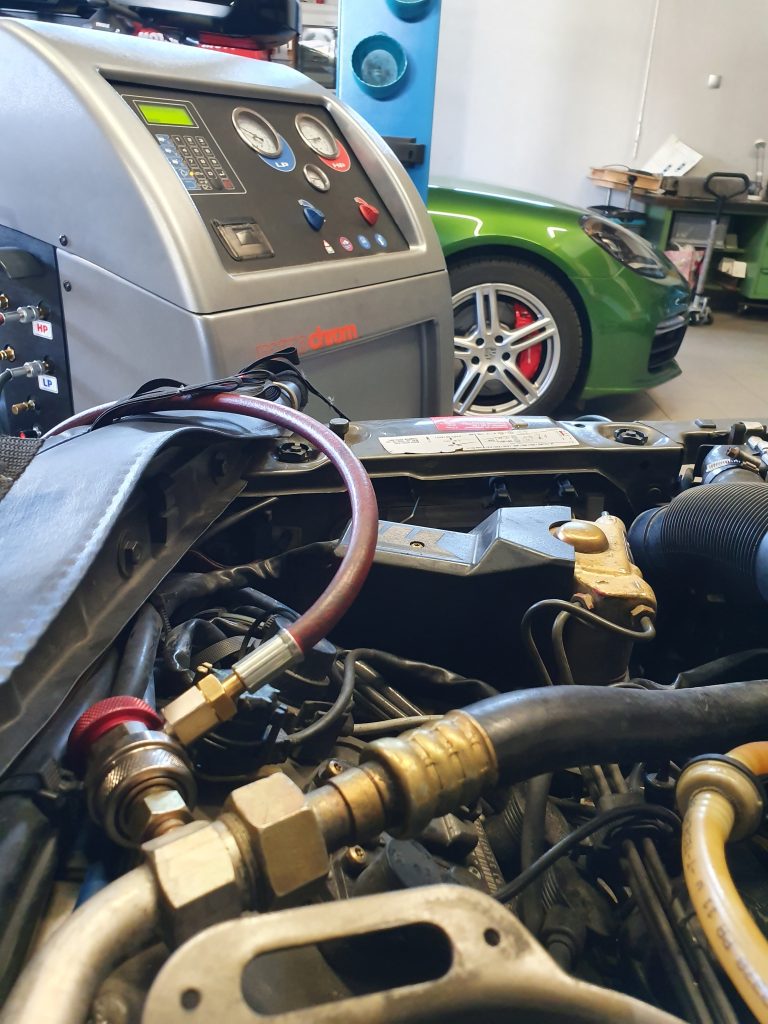 Im Kühlmittel der Klimaanlage ist u.a. Öl zugesetzt, das z.B. den Klimakompressor und den Verdichter schmiert und Dichtungen vor dem Austrocknen schützt.